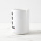 White mug with black text