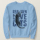 Real Men Love Cats rendered in a most unique whimsical grunge style design concept on a custom gift, great for all occasions.