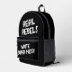 Real Rebels Write Super Messy, cool rebel Backpack in black and white— the ultimate rebel statement for daring dudes, cool gals, and chaotic creatives who turn messy handwriting into signature style!