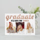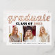 Class of 2022 graduate real rose gold foil typography graduation photo collage invitation with three photos. The black includes a rose gold and white pattern with polka dots and your text.