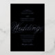A beautiful real silver foil wedding invitation with traditional script typography. A stunning black and silver wedding invite design with minimalistic classy typography. Traditional script typography creates a timeless elegant silver foil wedding invitation design.