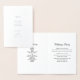A beautiful real silver foil wedding order of service program with monogrammed initials framed by silver foil leaves. A stunning wedding order of service program design with minimalistic classy typography. Traditional script typography and damask wreath create a timeless elegant silver foil wedding order of service program design.