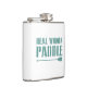 Well made flask, a little better than I had expected. Flask came in clear plastic box which gave it a nice presentation when I took it out of the zazzle packaging. Image is not printed on flask but on sticker. Don't know how this will hold up I haven't used it yet. This would make a Great gift! I plan to purchase more for friends! Cheers. I thought a little brighter than computer. Very crisp, writing wasn't