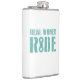 Well made flask, a little better than I had expected. Flask came in clear plastic box which gave it a nice presentation when I took it out of the zazzle packaging. Image is not printed on flask but on sticker. Don't know how this will hold up I haven't used it yet. This would make a Great gift! I plan to purchase more for friends! Cheers. I thought a little brighter than computer. Very crisp, writing wasn't