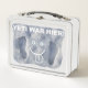 This is a standard metal lunchbox that appears to work just fine. We designed this box ourselves with an uploaded photo and custom text on the front and back. It looks absolutely beautiful except the front of the lunchbox is not centered like it shows in the photo. The print borders don't align with the inset flat part of the box where the preview photo online showed it perfectly centered in there. The back looks nice and centered though.
