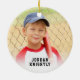 Create a keepsake ornament for a baseball player personalised with their name and jersey number as well as the year on the front and a photo and name or other custom text on the back. HELP: For assistance with design modification/personalisation or transferring the design to another ornament style or product, contact the designer BEFORE ORDERING via Zazzle Chat or makeitaboutyoustore@gmail.com.