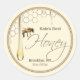 Realistic Bee and a few enticing drips of honey and honeycomb make this whimsical round label stand out from the rest. Matching Nutrition Facts label with honey drips available.