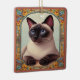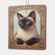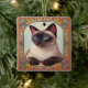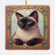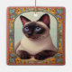 Realistic Cute Siamese Cat Colourful Floral Border Ceramic Ornament
