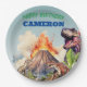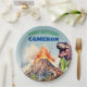 Realistic Dinosaurs and Volcano Custom Name Paper Plate