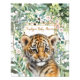 This beautiful watercolor design features a realistic sweet tiger cub sitting among the tropical leaves in the jungle. It features a variety of green, golden yellow and orange colour palettes and a decorative font.