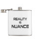 Well made flask, a little better than I had expected. Flask came in clear plastic box which gave it a nice presentation when I took it out of the zazzle packaging. Image is not printed on flask but on sticker. Don't know how this will hold up I haven't used it yet. This would make a Great gift! I plan to purchase more for friends! Cheers. I thought a little brighter than computer. Very crisp, writing wasn't