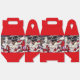 Original whimsical painting of Holiday Dollys by well-season Fine Art Artist, Gaye Elise Beda. A gathering of anthropomorphic mice is dressed in festive, holiday-themed clothing. Their bright red outfits and striped socks create a joyful and playful scene, with each mouse uniquely adorned. The background suggests a wintry setting, enhancing the festive mood.