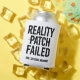 “REALITY PATCH FAILED” flickers with distorted typography, fractured noise, and cold digital chaos.