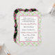 Wedding invitation with several shapes to chose from, with an all over design of patterned and floral. All text can be personalised to your own information, and all text fields are removable. You may also select a different font style and colour. Background colour on both front and back in black and grey can also be changed to any colour to match your beautiful wedding day. Would be happy to design other items to coordinate with this design please feel to contact.