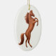 Original painting of a rearing wild stallion by artist Carolyn McFann of Two Purring Cats Studio on a quality Christmas ornament for horse lovers.