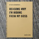 Personalise the name to be printed on the bottom of "Reasons Why I'm Hiding from My Boss" cover.
