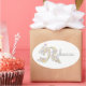 Pretty girls name sticker ideal for embellishing books and to personalised girls items. Stickers reads Rebecca or you can personalise with your own name starting in R. Graphic decorative R with hearts and flowers art © Designed by Sarah Trett www.sarahtrett.com for www.mylittleeden.com