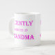 Recently promoted to Grandma in pink text with a solid white background. The text is printed on both sides so that it doesn't matter if you are right or left handed, you will still be able to show your pride. This is a JUMBO 20oz mug which means less time filling it up and more time with your new grandchild. "recently promoted to Grandma", grandchildren, grandparent, celebration, baby, joyous, occasion, happy, coffee, tea,