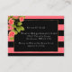 Reception - Coral Roses on Coral and Black Stripes Enclosure Card