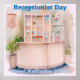 This pink Receptionist Day poster was created with generative art. The style of the art is a muted colours watercolor painting style. The poster shows a receptionist desk watercolor painting. The title Receptionist Day is at the top of the poster in blue text and the Second Wednesday Of May occurrence of the holiday is at the bottom in light blue text. This Receptionist Day poster looks like a sentimental watercolor painting with memories of being a receptionist and pretty pink, lavender and blue colours with plants. The artistic design is printed on a custom gallery quality Giclee poster. The giclee prints are ideal for vibrant artwork and photo reproduction. The poster shown is 24" by 24" and you can pick other sizes of posters. You can select a frame when you checkout.