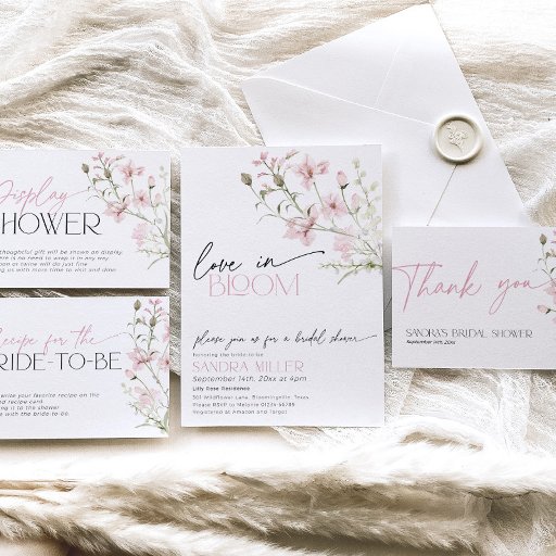 Recipe Card for the Bride invitation insert with hand drawn watercolor wildflowers in blush pink. This design is perfect for a floral summer Bridal Shower.