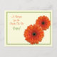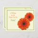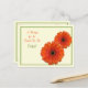 The text on this orange gerbera daisy recipe card for the bride to be is fully customisable. You can change it using the personalise option. For more extensive changes to the postcard, including changing the background colour, font, font colour, or font layout, choose the customise option. This recipe card can be enclosed in the matching bridal shower invitation so that bridal shower guests can fill out the back with their favourite recipes and bring the card with them to the shower as a wedding keepsake for the bride to be. You could also use this in a birthday party invitation by changing the text on both the invitation and this card. The matching invitation is shown below.