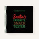 Quote: Santa's Favourite Snack Tester. Personalise and add a name. Red, green and brown text. Black background.