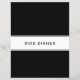 Custom double sided recipe divider page for a black and white cookbook recipe binder; one design of a matching set. Features a simple modern minimalist design in a classic black and white colour palette with customisable text presented on a coordinating white banner with black accents