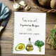 A cookbook notebook for a foodie and your favourite vegitarian recipes. On the front: avocado, broccoli and olive oil
