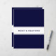 Custom double sided recipe index page for a navy blue and white cookbook recipe binder; one design of a matching set. Features a simple modern minimalist design in a classic navy blue and white colour palette with customisable text presented on a coordinating white banner with navy accents.