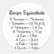 This simple retro design gives recipe measuring equivalents for help baking and cooking in the kitchen in pretty script letters.