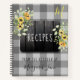 A charming rustic vintage farmhouse recipe organiser cooking book with yellow gold sunflowers bouquets over a black and white buffalo check gingham plaid pattern. ++++++++++ Personalise it with chef monogram, name, and your text! +++++++++ It can be a modern personal blank recipe journal book for your kitchen, a grandma's family cookbook, or a beautiful custom keepsake gift for a cooking lover, a chef, for a bridal shower, wedding, family anniversary, birthday, Christmas.