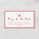 Invite guests to share their culinary love with this charming "Recipe for the Bride" insert card, designed to complement an Italian-inspired bridal shower. Featuring a red and white chequered border, it evokes the cosy feel of a traditional Italian kitchen, setting the perfect tone for a warm, family-centred celebration. Encourage guests to bring a favourite recipe, creating a keepsake collection for the bride that’s filled with love, tradition, and delicious memories. A heartfelt touch that brings everyone together to share their best dishes and treasured recipes!