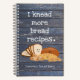 A cute cartoon of happy bread products! Write down all your bread recipe details and sourdough discard recipes in one place. Makes a great gift for the bread baker. Original design by Night Owl's Menagerie, c. 2023.