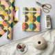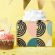 This wrapping paper has a mid-century modern design of solid semi-circles matched with black and white concentric semi-circles, all on a gold background. If you like the design but prefer different colours, message me.
