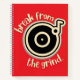 A notebook that says "Break from the Grind" with an image of a record and a music note is a nostalgic and musical design, often worn by music lovers or those seeking a break from their daily routine. It suggests a desire to escape the stresses of everyday life and enjoy the power of music.