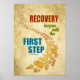 "Recovery begins with the First Step" – Encourage and motivate yourself and others to reach freedom with this powerful statement. Used in recovery and 12 step programs, be free from addiction and walk one day at a time towards sobriety. Design: Stepping stones, the symbolic path to recovery.