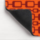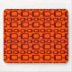 This mouse pad has a md-century modern design of maroon rounded rectangles connected together on a field of orange.