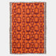 This throw blanket has a md-century modern design of maroon rounded rectangles connected together on a field of orange.