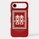 A modern double happiness design within a simple double lined red rectangle frame. An auspicious and classic symbol used in all chinese, oriental and asian wedding.