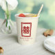 A modern double happiness design within a simple double lined red rectangle frame paper cup. An auspicious and classic symbol used in all chinese, oriental and asian wedding.