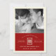 A modern double happiness design within a simple double lined red rectangle frame double sided, wedding announcement card.