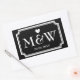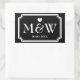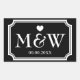 Rectangle black and white monogram wedding favour stickers. Cute heart with monogrammed name initials of bride and groom plus date of marriage. Personalised thank you stickers or envelope sealers / seals. Elegant typography for bride and groom name initials. Chic border design / fancy design. Customisable background colour. Romantic love theme label design.