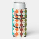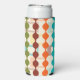 This seltzer can cooler has a mid-century modern design of rounded rectangles with holes as a background with rounded chains in the foreground all in MCM colours. If you like the design but prefer different colours, message me.