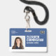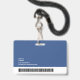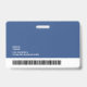 A modern and simple badge that does not distract from the important details. Easy to read from afar. Add a custom logo and company/hostpital/clinic details. Add the employee's name, photo, and professional title. The bar of colour can be modified to match the company's official colours. At the back, add more information such as return address and the employee's ID number. Perfect for rectangular shaped logos.