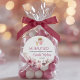 Add charm to your Catholic Baptism favours with this Christening sticker featuring a cute girl angel and a chalice, adorned with pink flowers. Available in spanish.