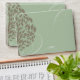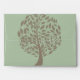 Printed on recycled paper, with other paper types available. Soft, natural and scenic outdoor nature design in colour shades of sage earthy green and soft earth brown. Stylised modern tree shape with flowing white swirls in the background. Some products available on recycled and earth friendly papers.
