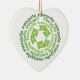 Recycle sign custom ornament featuring a circle made of the word recycle in gradient shades of green and the recycling sign in the centre.