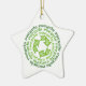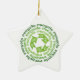 Recycle sign custom ornament featuring a circle made of the word recycle in gradient shades of green and the recycling sign in the centre.