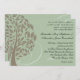 100% Post consumer recycled content wedding invitations. (also available on other paper types) Soft, natural and scenic outdoor nature design in colour shades of sage earthy green and soft earth brown. Stylised modern tree shape with flowing white swirls in the background. Some products available on recycled and earth friendly papers.